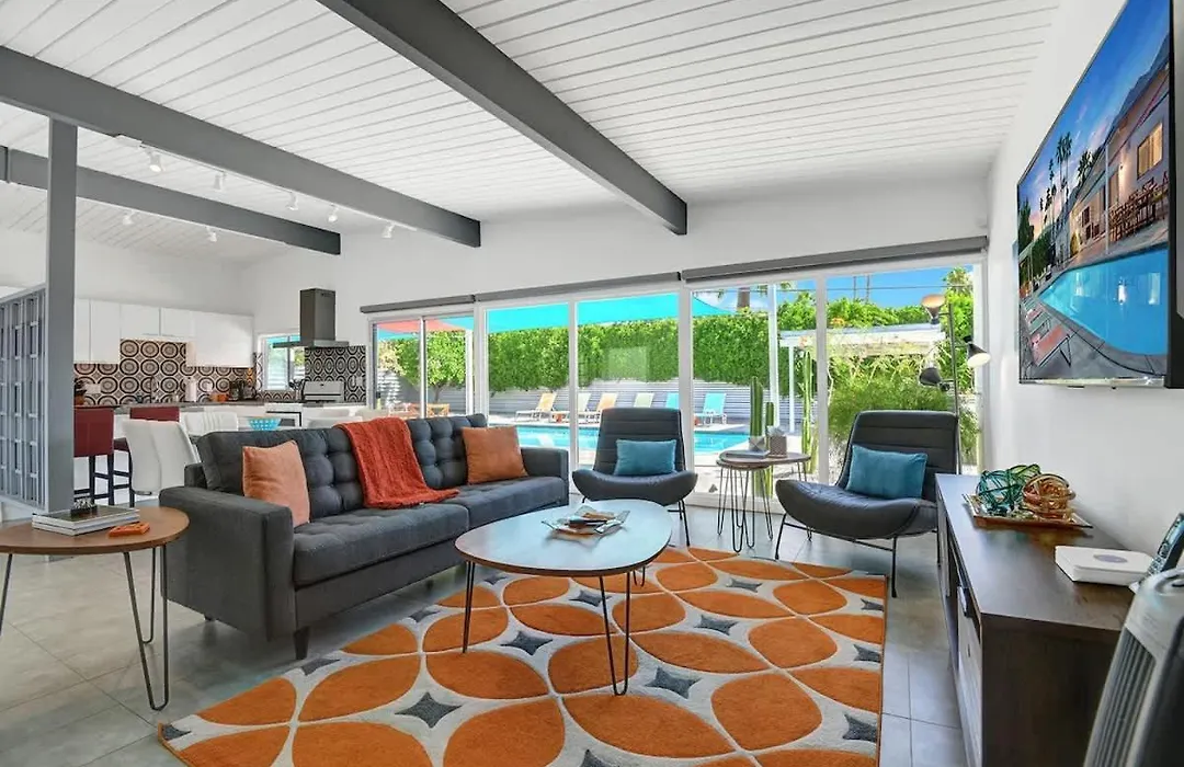 The 2-bedroom The Happy House - Alice Lodging Palm Springs villa is located 3.6 km from the Vista Las Palmas neighborhood and provides a Jacuzzi. Providing a private swimming pool, this accommodation also offers horseback riding and mini golf for active guests.